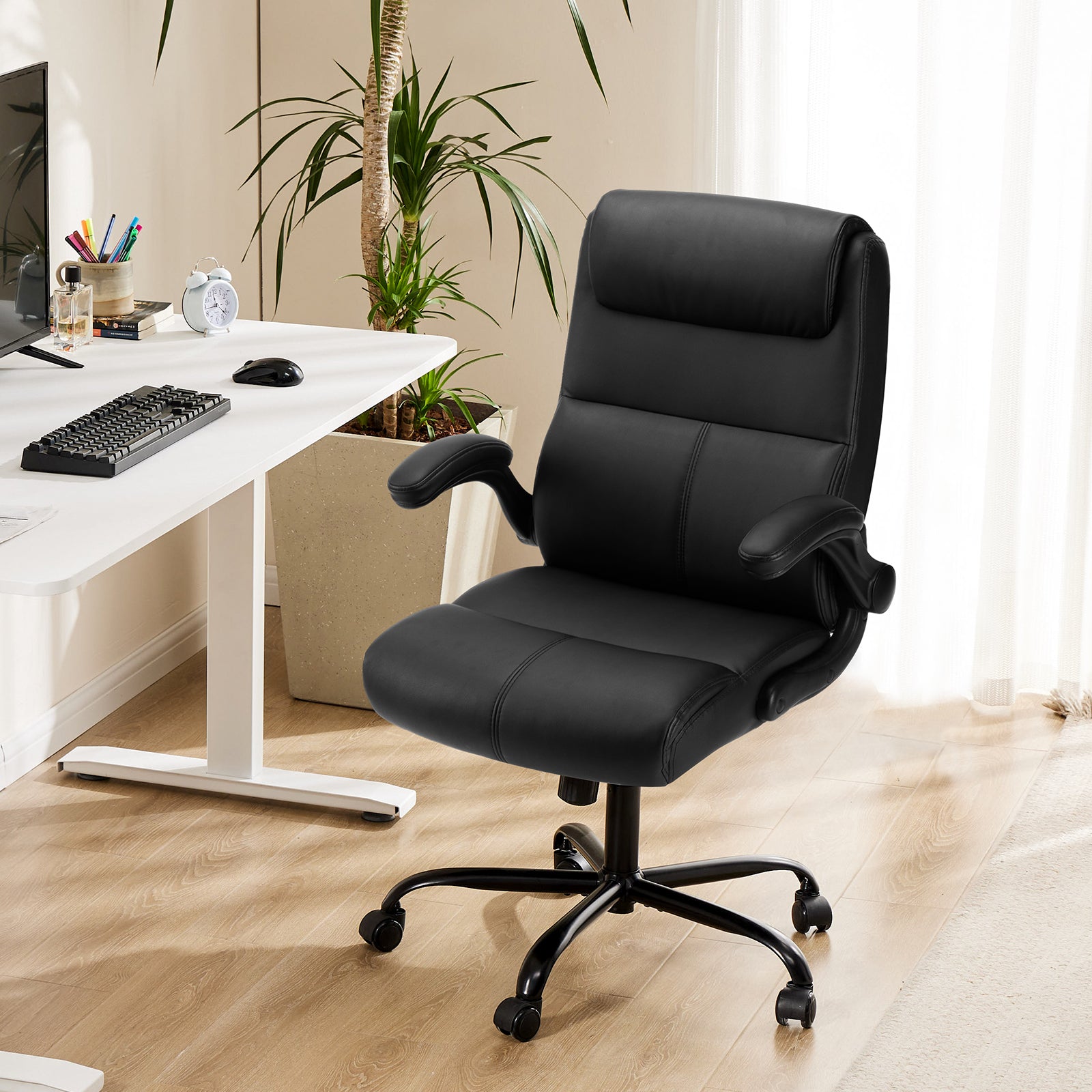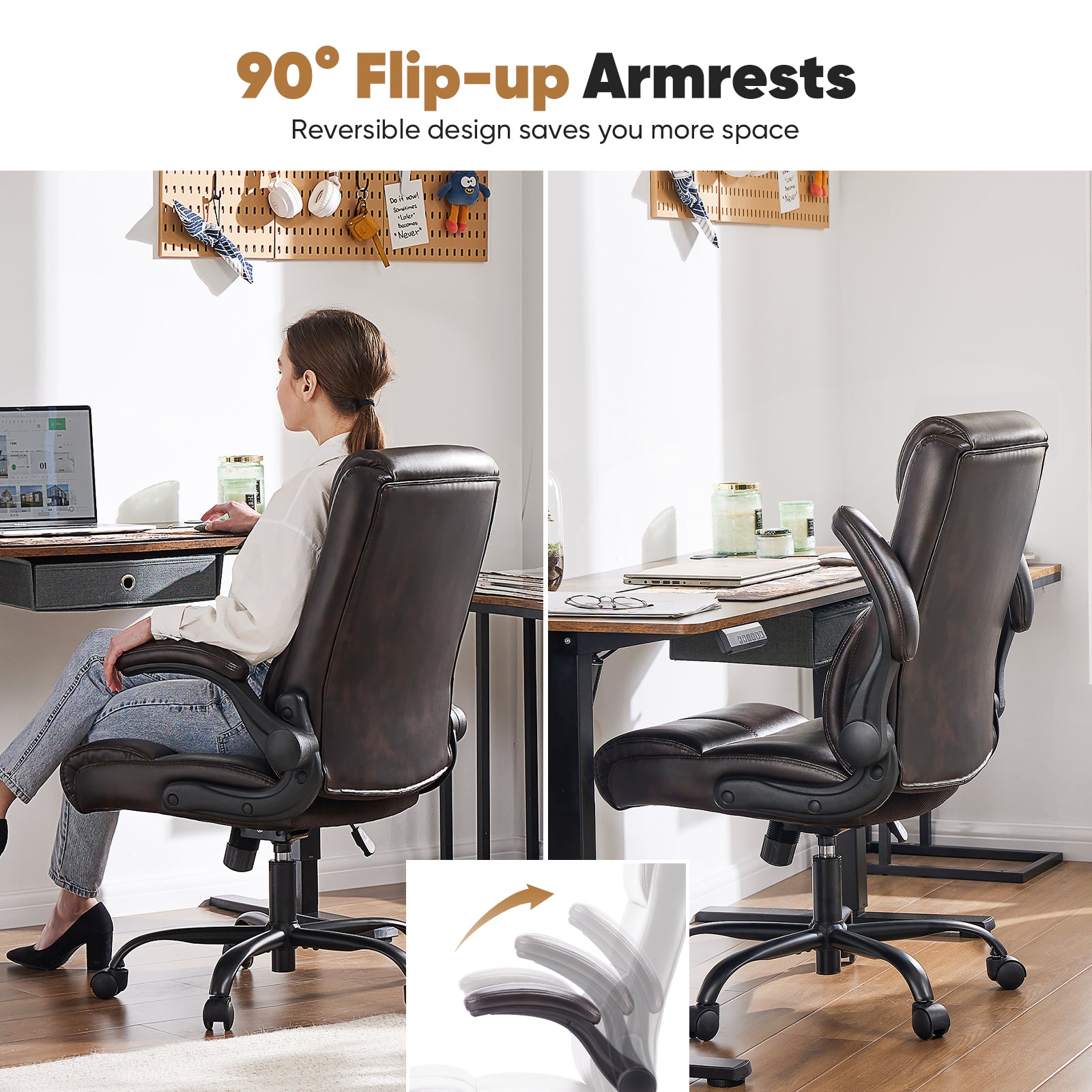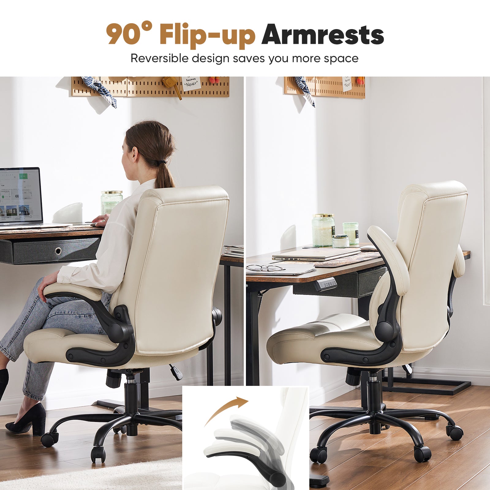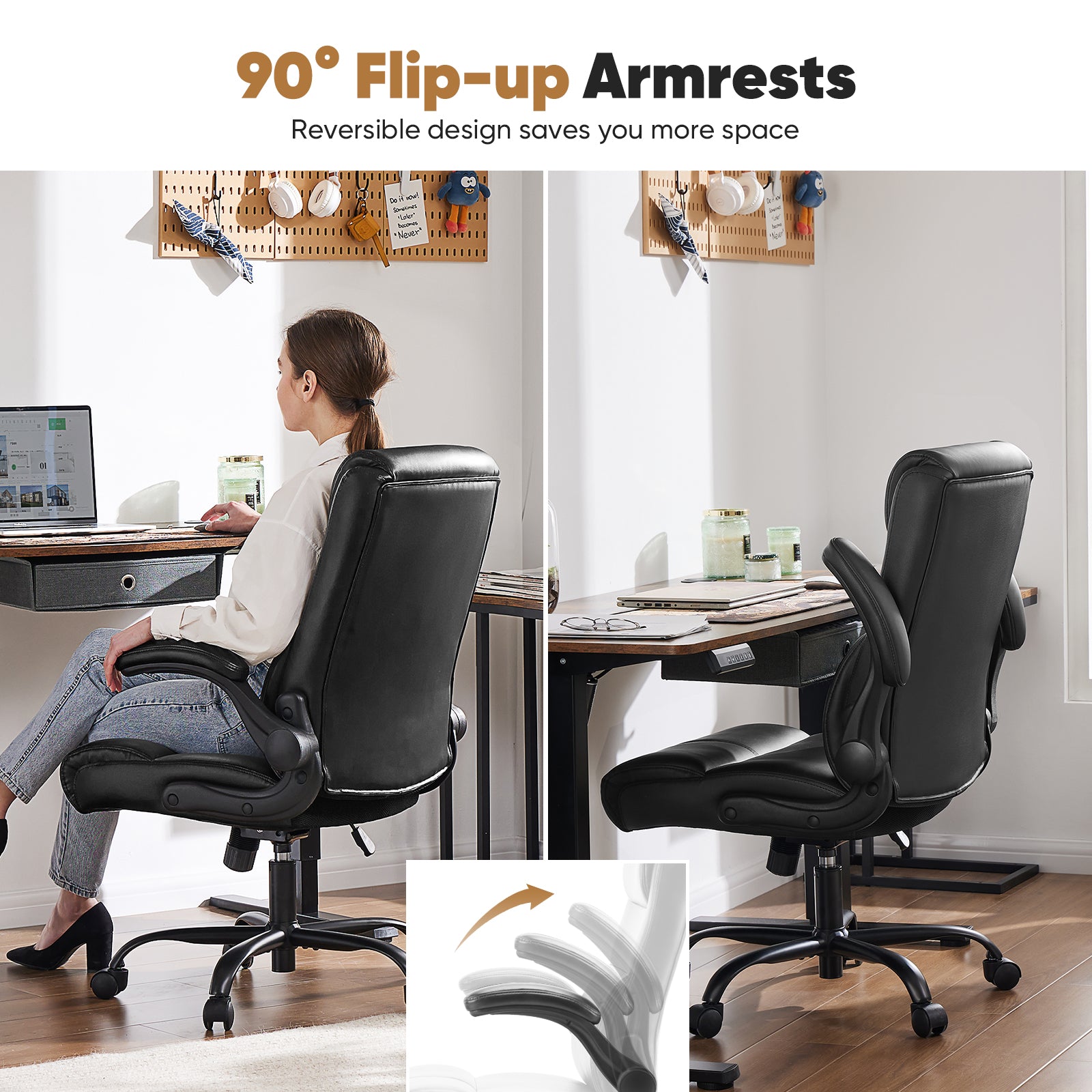 - Multi-Functional - This comfortable office chair with 90¡ã flip-up armrests offers convenience while saving you space. The backrest of the office chair's lumbar support is designed with 2-stage foam padding, which makes the lumbar force more even, even if you sit for a long time, you can keep your body relaxed.