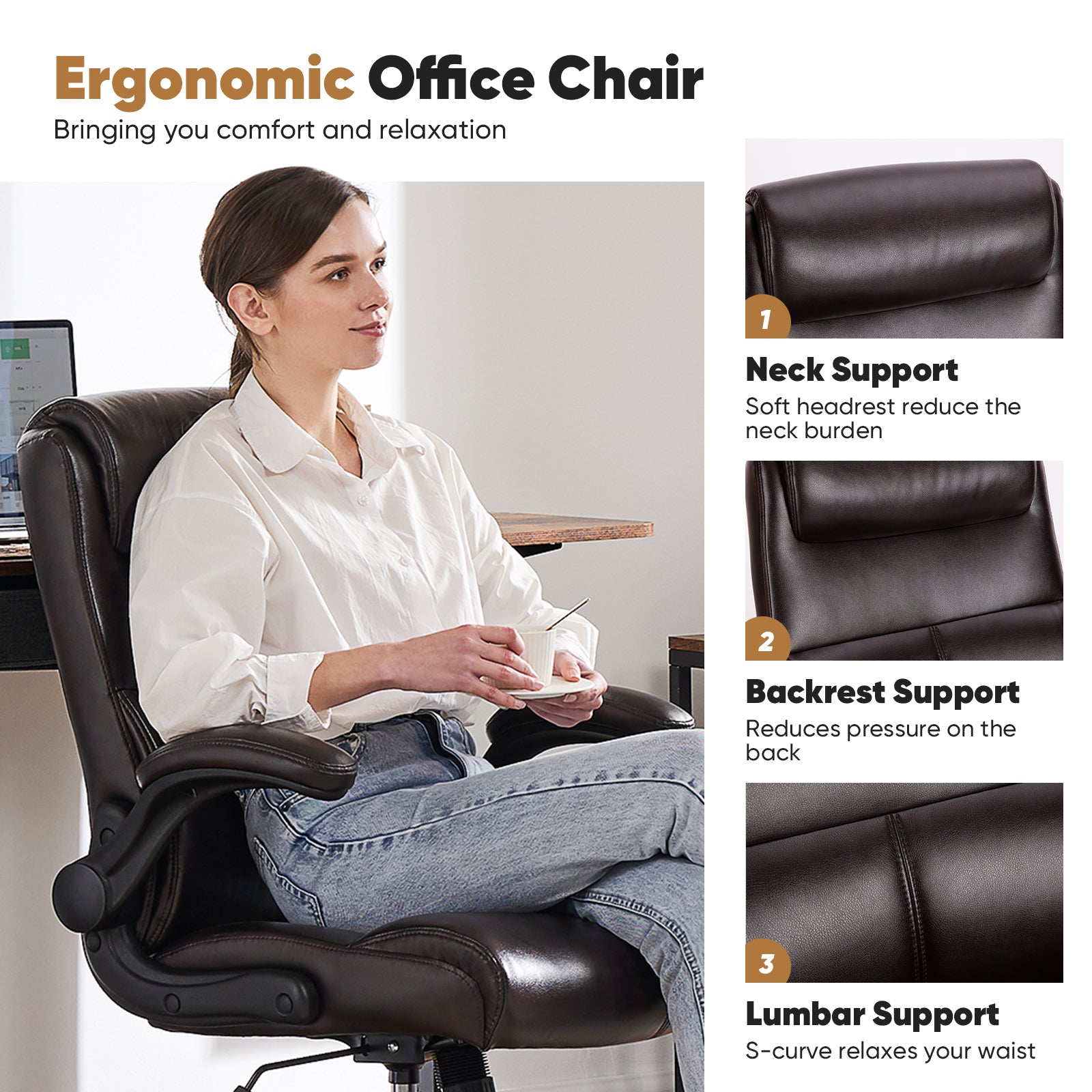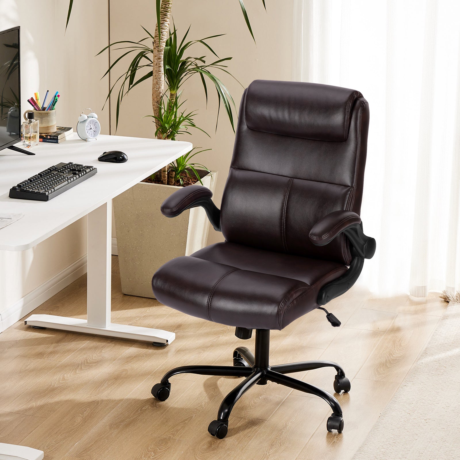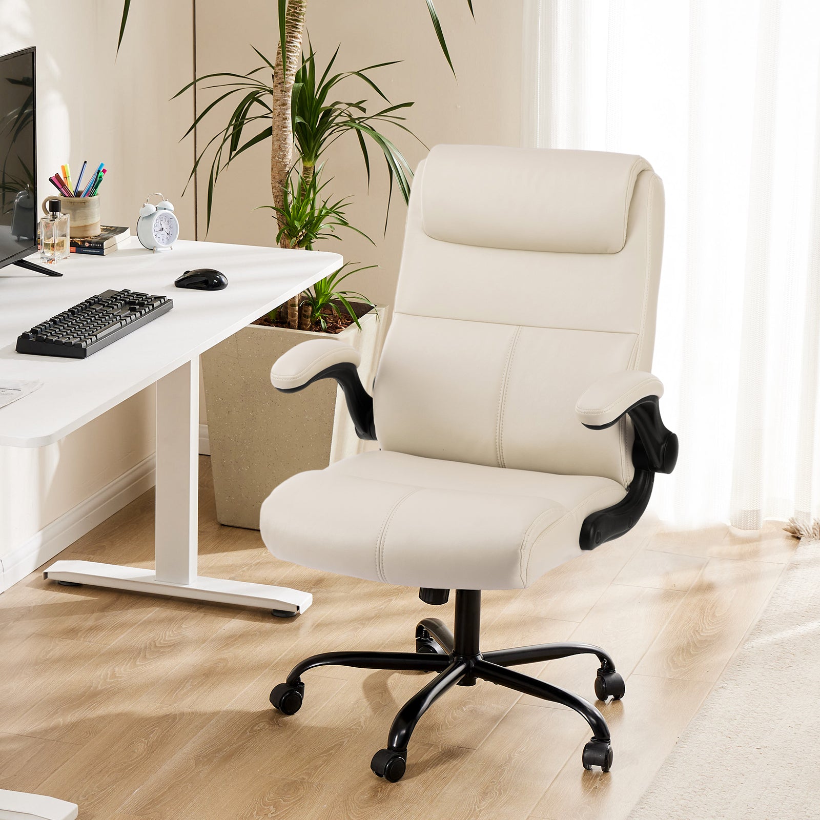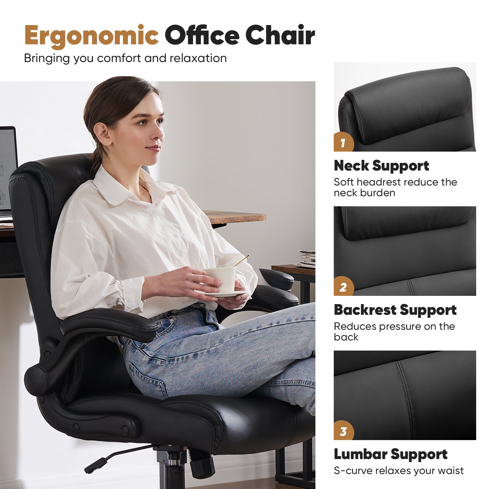- Multi-Functional - This comfortable office chair with 90¡ã flip-up armrests offers convenience while saving you space. The backrest of the office chair's lumbar support is designed with 2-stage foam padding, which makes the lumbar force more even, even if you sit for a long time, you can keep your body relaxed.