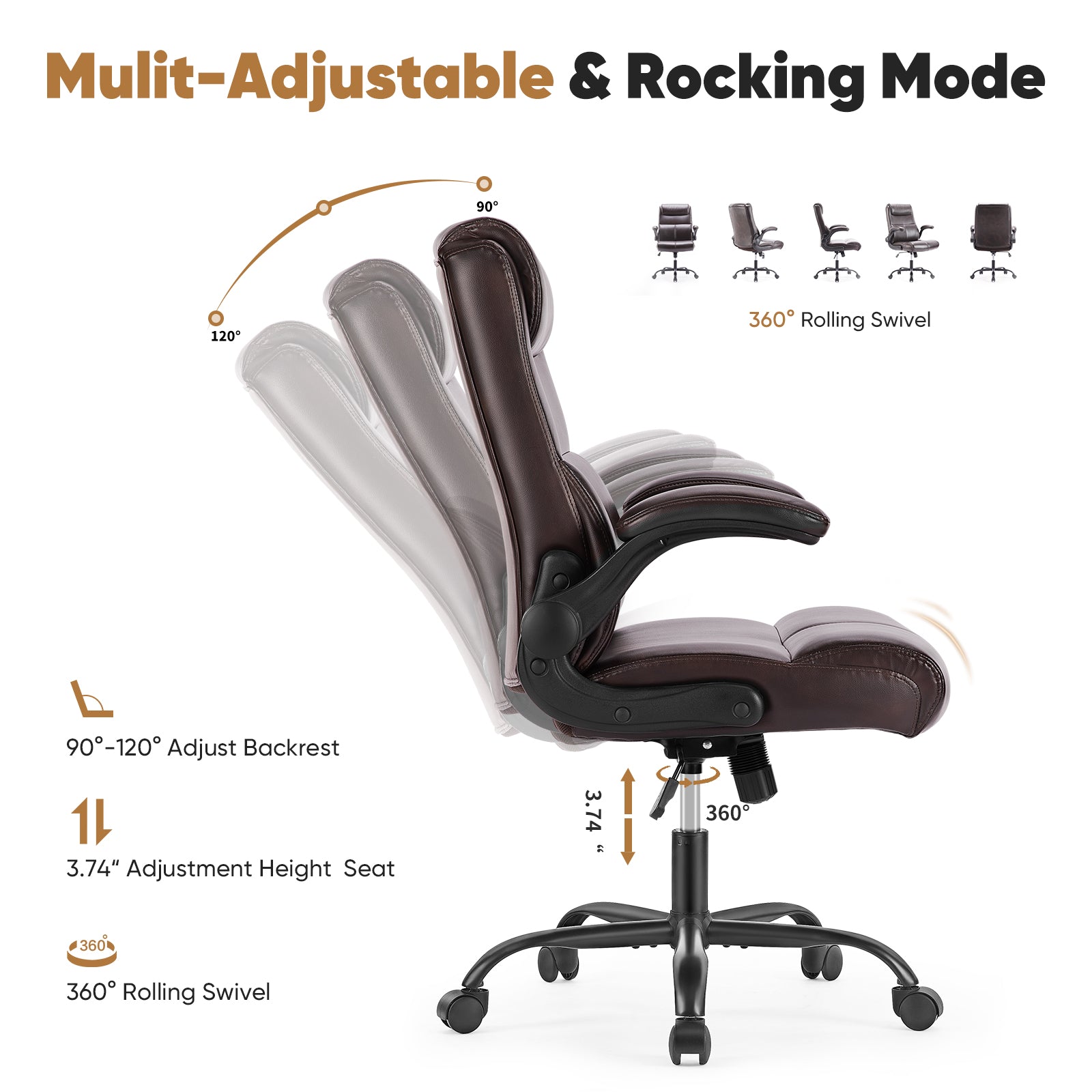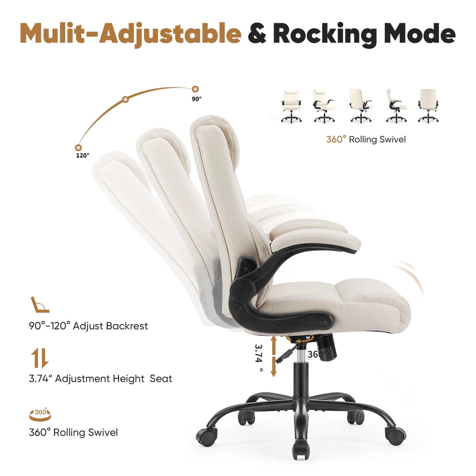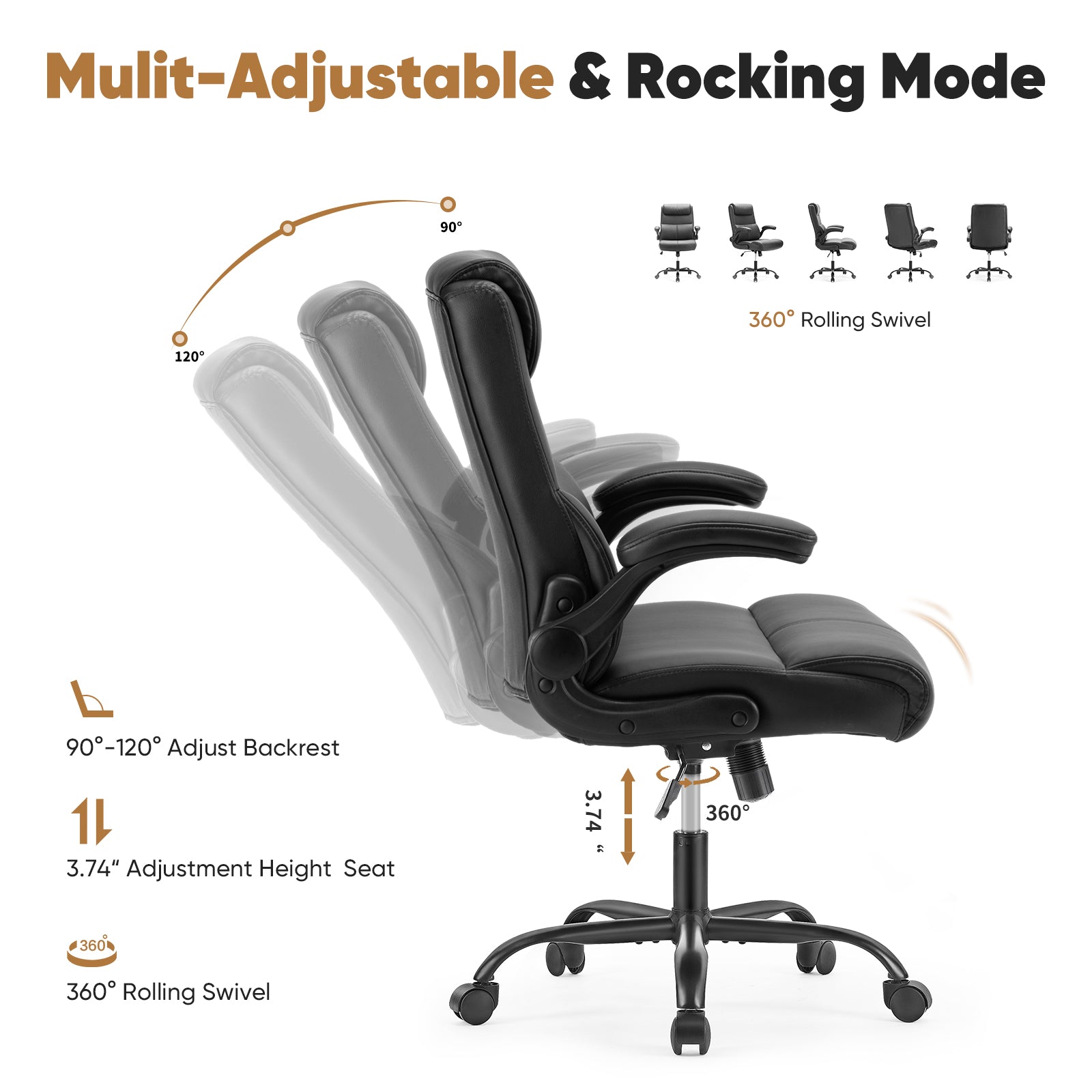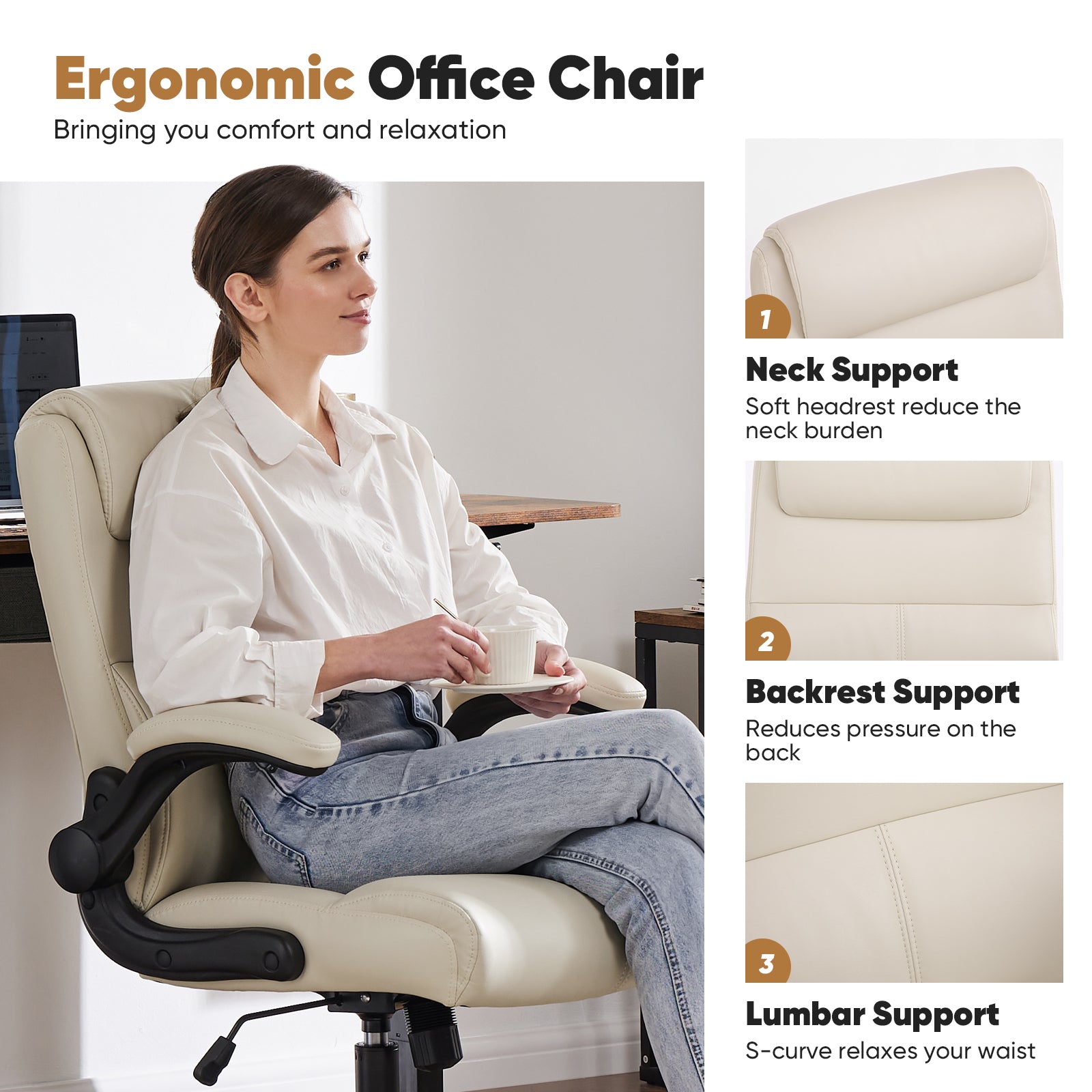 - Multi-Functional - This comfortable office chair with 90¡ã flip-up armrests offers convenience while saving you space. The backrest of the office chair's lumbar support is designed with 2-stage foam padding, which makes the lumbar force more even, even if you sit for a long time, you can keep your body relaxed.