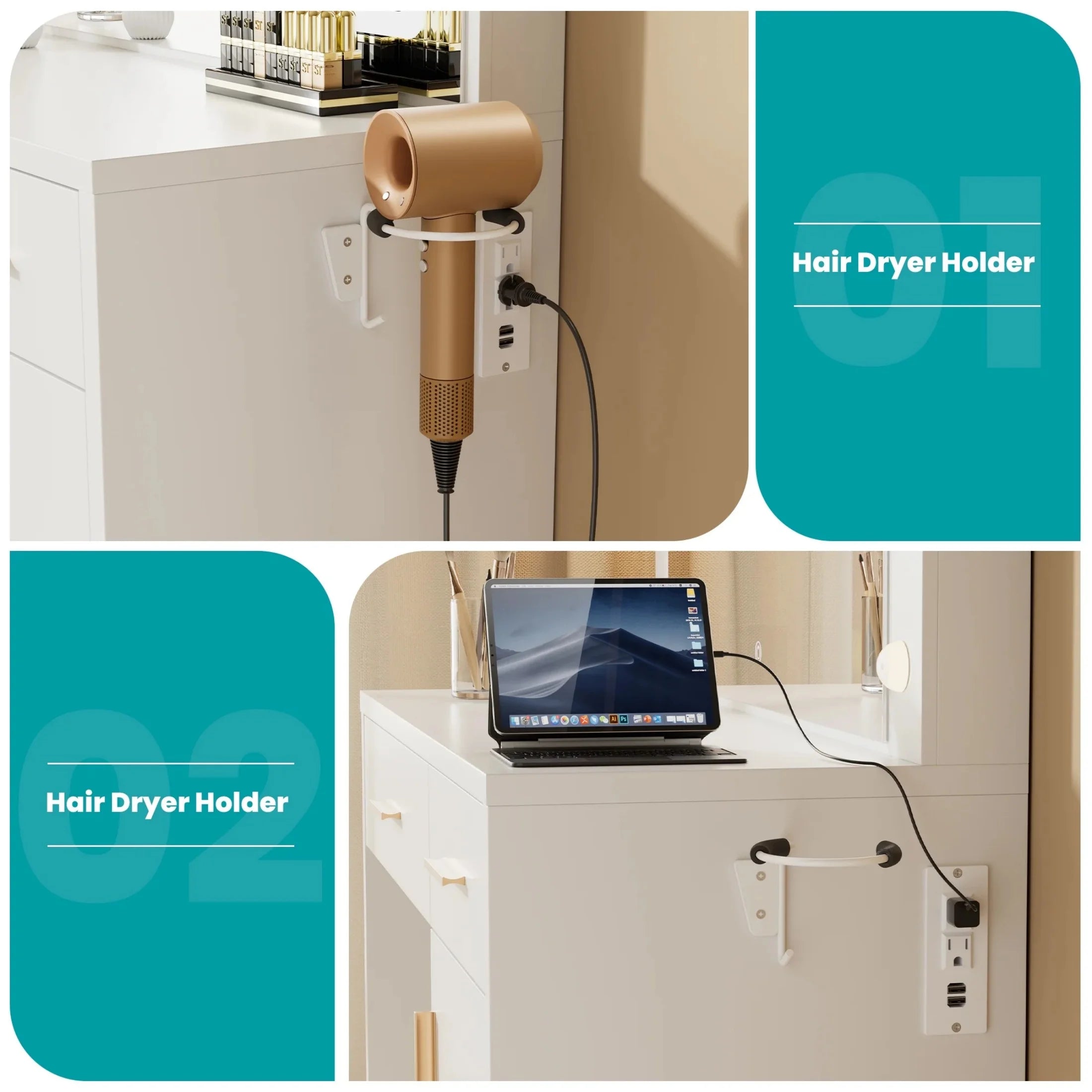 - 【Built-in Charging Station】 The vanity is equipped with 2 AC outlets, 1 USB port, and 1 Type-C port, allowing you to easily use a hairdryer or curling iron while sitting at the vanity, and charge your phone, tablet, or other electronic devices. This convenient design makes you more inclined to stay at the vanity, creating a refined and relaxed makeup experience.