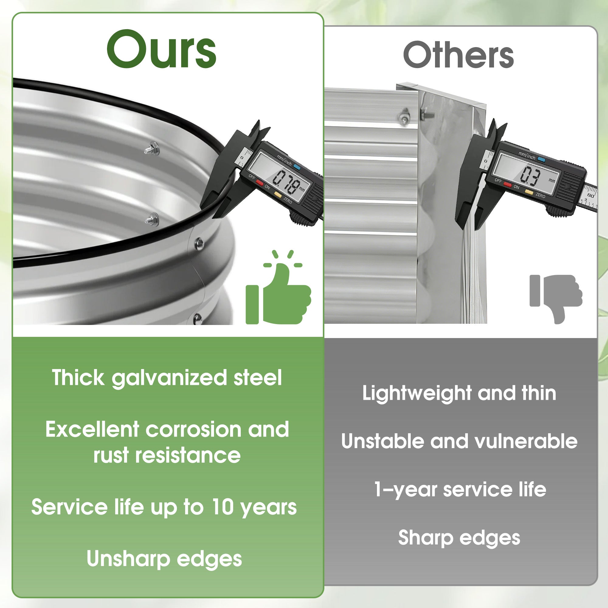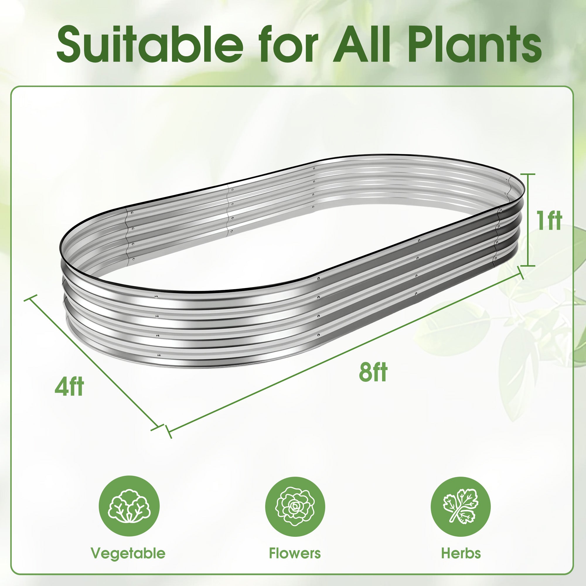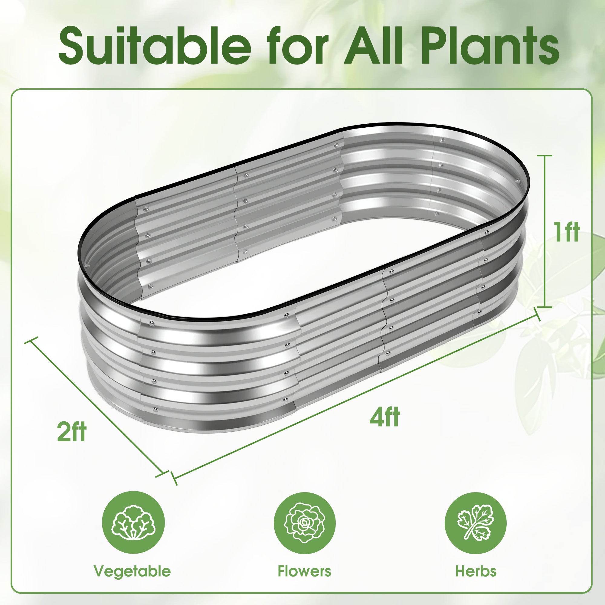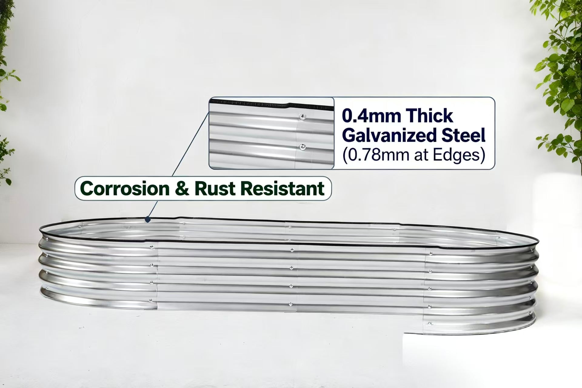 Safe & Durable: Made from 0.4mm galvanized steel with reinforced edges and protective rubber trim, this oval raised garden bed helps prevent cuts and sharp corners while offering long-lasting rust and corrosion resistance.